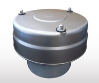 VCP-D Druckentlastungsventile bestehen aus einem zylindrischen Gehäuse mit einem Flansch, der mit einer auf dem Silodach verschweißten Zarge verbunden ist, einem Innenpolymerdeckel in Scheibenform für den Unterdruckbetrieb, der durch einen zentralen Federstab in Position gehalten wird, einen äußeren Kunststoffring für den Überdruckbetrieb, durch drei Federstäbe in Position gehalten wird, Dichtungen und eine Wetterschutzabdeckung.