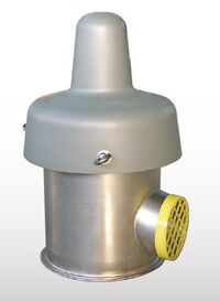 VHS Druckausgleichsventile bestehen aus einem zylindrisch geformten Metallgehäuse, welches durch Spannringe an einem in das Silodach eingeschweißten Stutzen befestigt ist, einem Abluftstutzen, der mit einer Rohrleitung verbunden werden kann, einer elastischen Membran, die augenblicklich, d.h. ohne jegliche Zeitverzögerung, den Druckausgleich herstellt, einem Satz Gegengewichte, welche das Ventil unter normalen Bedingungen geschlossen halten sowie einer Wetterhaube.